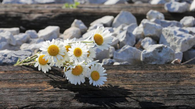 daisy bouquet auf eisenbahn, Quelle: GoranH, Pixabay License Freie kommerzielle Nutzung Kein Bildnachweis nötig