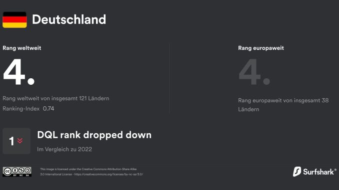 In der fünften jährlichen Studie „Digital Quality of Life Index (DQL)“ von Surfshark liegt Deutschland auf Platz 4 weltweit und die Position hat sich damit im Vergleich zum Vorjahr um einen Rang verschlechtert. Mit Blick auf alle fünf Grundpfeiler schnitt Deutschland im Bereich Internetsicherheit mit Platz 5 am besten ab, während es bei Internetqualität nur für Rang 40 reichte. Das Land rangiert in puncto Internetpreis auf Platz 7, bei Digitaler Infrastruktur auf Platz 12 und bei E-Government auf dem 22. Rang. In der Gesamtwertung liegt Deutschland noch vor Österreich (Platz 8) und der Schweiz (Platz 9), während Frankreich die Rangliste anführt. Es lässt sich feststellen, dass europäische Länder hinsichtlich digitaler Lebensqualität weltweit führend sind – Deutschland landet im europäischen Vergleich auf Rang 4.
