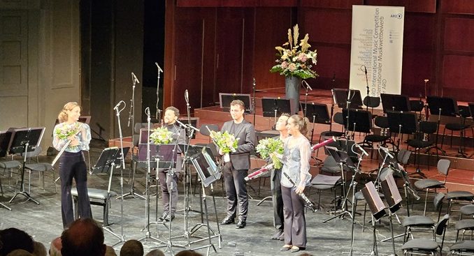 Wofür sich dieser Abend lohnte, waren die Fünf vom „Pacific Quintet“. Sie haben sowohl die gespenstische als auch die herrlich ironisierte „Rauhnacht“ der 1969 geborenen Johanna Doderer umwerfend „geblasen“. Das Auftrags-Werk des Internationalen Musikwettbewerbs der ARD 2024, finanziert durch die Ernst-von-Siemens-Musikstiftung gehört ab sofort zu einem Pflicht-Stück für Bläserquintette. In der duftigen, frei-rhythmisch eleganten Interpretation von Aliya Vodovozova (Flöte), Fernando José Martínez Zavala (Oboe), Liana Leßmann (Klarinette), Pablo Neva Collazo (Horn) und Kenichi Furuya (Fagott) kam es in der Tat zu einem bravourösen Abschluss .