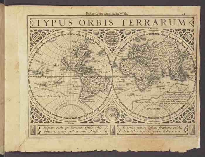 Atlas minor“ Weltkarte von Gerhard Mercator (KSW/HAAB Kt 700 – 231 B), ©Klassik Stiftung Weimar. Die Anschaffung des „Atlas Minor“ wurde 2022 durch die GAAB ermöglicht.