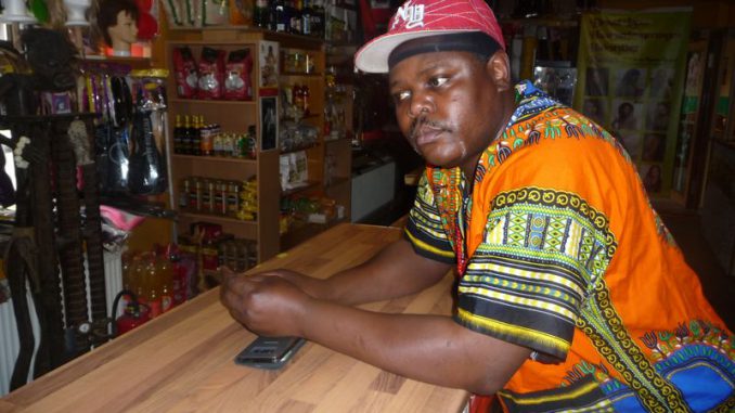 Früher, zu DDR-Zeiten war dort zeitweilig eine Apotheke, berichtet ein älterer Herr, der in der Straße seit über 40 Jahren wohnt. Allein die Geschichte hat dafür gesorgt, dass in der Zwickauer Römerstraße statt miefigem Sozialismus nun ein Hauch von großer, weiter Welt weht. Neben afrikanischer Kleidung und importierten Haarsprays gibt es bei Manuel Nguelezo auch ausländischen Wein, Liköre und die in Angola so beliebte Ingwerlimonade zu kaufen; zudem Musikinstrumente, Schmuck und Kosmetikartikel. Auch die Speisekarte lässt sich sehen. Wahlweise Reis, Kochbananen oder Pommes frites mit Salat und Entenfleisch plus ein Kaltgetränk für zehn Euro. Damit hebt er sich bewusst vom großen Konkurrenten mit dem gelben „M“ ab, der in Zwickau inzwischen mit zwei Filialen vertreten ist. Hinzu kommt: Nguelezos Bistro ist auch ein Treffpunkt für Flüchtlinge, junge Männer, die sich dort austauschen und das offene WLAN nutzen. „Viele suchen Jobs, träumen von einer Ausbildung oder einem Studium, Dinge, ohne die man hier schlechte Karten hat“, sagt Nguelezo. Das sage er seinen Landsleuten immer wieder; auch wenn viele oft stundenlang die Zeit bei ihm totschlügen, weil es in der Asylunterkunft zu langweilig ist oder die anstehende Deutschprüfung noch in weiter Ferne liegt. „Deutsch ist aber schon eine schwierige Sprache“, zeigt sich Nguelezo auch verständnisvoll. Vor allem für Afrikaner, die neben ihrer Stammessprache oft noch Französisch oder wie er, Portugiesisch gelernt haben, romanische Sprachen, die mit dem Deutschen nicht verwandt sind. Nguelezo hat Deutsch mithilfe seiner Frau und bei Elternabenden gelernt, sagt er. Von Anfang an war ihm klar, dass er sich in die deutsche Gesellschaft einbringen müsse, dass er eine Bringschuld habe und nicht daraufsetzen könne, vom Sozialstaat abgeholt zu werden. „Und wäre jetzt nicht Corona, hätte ich heute schon mehrere Afrofrisuren gemacht“, sagt Nguelezo und lacht. Es ist ein bitteres Lachen, denn in wenigen Tagen sind knapp eintausend Miete für das Ladenlokal fällig. Zwar steht draußen das Schild mit dem Label „Afroshop“ und offen ist sein Laden auch, doch kaum wer möchte mit Mundschutz zum Haarstylisten gehen.