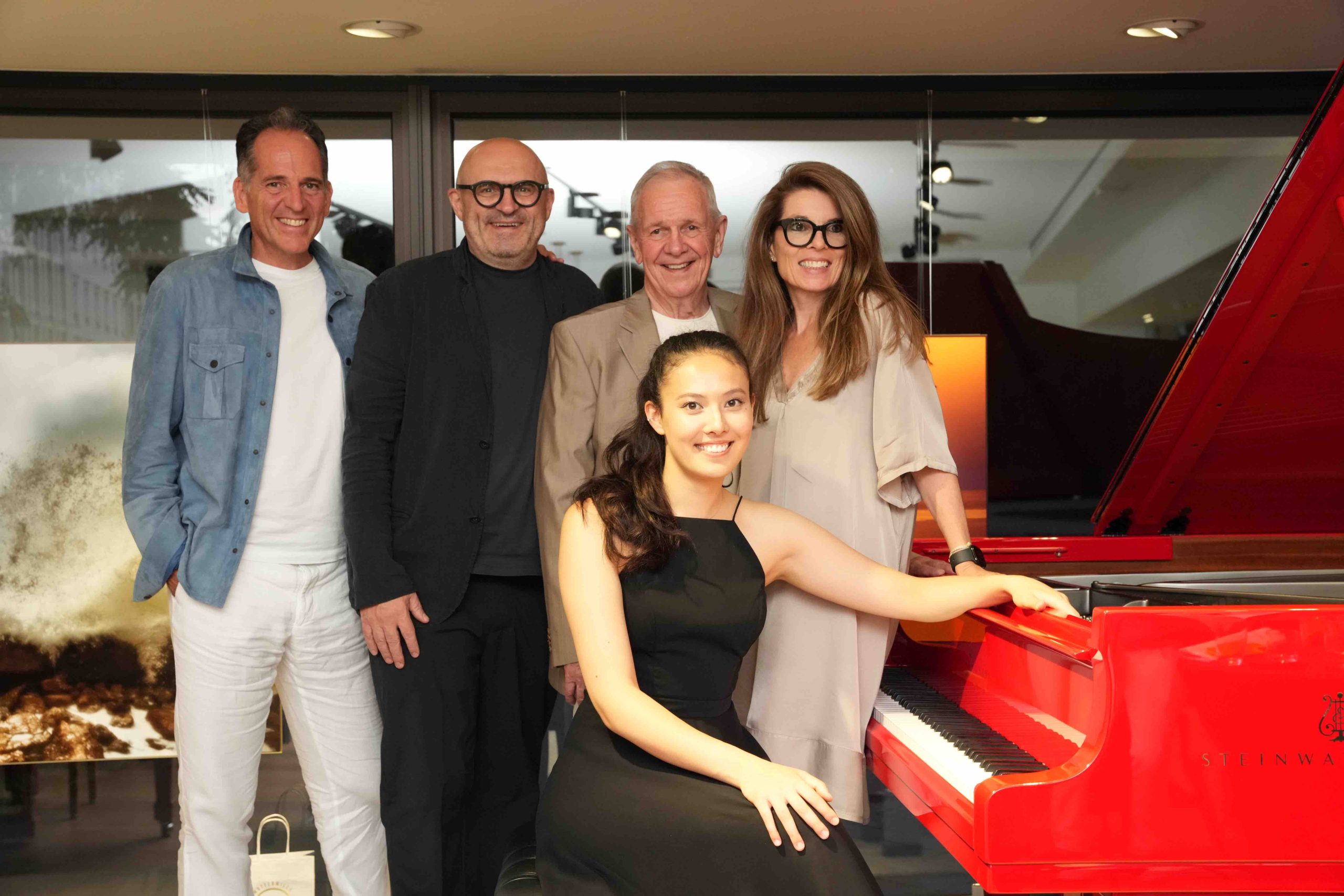 5_Yannakopoulos_Plakinger_Egner_Strigl_Walser Künstler Ares Yannakopoulos, Joe Plakinger, Fritz Egner, Veranstalterin Andrea Strigl und Pianistin Vivien Walser. Foto: © AresDKY Drucken