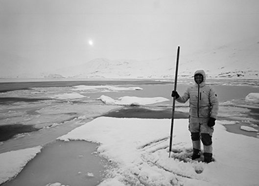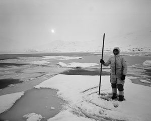 Ins Blickfeld der Ausstellung mit ihren herrlichen Bildern und sehr überzeugenden Dokufilmen rückt erneut das Thema vom komplexen Verhältnisses zwischen Mensch zur Natur. Die eindrucksvollen S/W-Foto Bilder des Italieners Paolo Solari Bozzi verfolgen das Leben in der eisigen Kälte der Inuit -Bevölkerung– die „Eskimos“, wie man sie früher nannte – an der Ost-Küste Grönlands kurz vor Frühlingsanfang. Die Inuit-Bevölkerung lebte noch vor nicht langer Zeit in einer Art Symbiose mit der Natur, von der sie sogar minimale Aspekte und Veränderungen wahrnehmen konnte. In ihrem Bemühen, sich der westlichen Lebensweise anzupassen, steht sie nun vor neuen Herausforderungen wie beispielsweise dem Phänomen des bisher beinah unbekannten Alkoholismus, der eine ganz besondere Bedrohung für sie darstellt, zumal die Inuit-Bevölkerung aus genetischen Gründen nicht imstande ist, Spirituosen zu metabolisieren. Gezeigt werden Bilder, die von einem Leben unter immer härteren Bedingungen erzählen, welche eine harmonische Kohabitation mit der Natur als unmöglich erscheinen lassen. Auch die Fotos des Isländers Ragnar Axelsson stellen die schwierige Existenz der arktischen Bevölkerung von Sibyrien nach Alaska, von Kanada bis hin nach Grönland und Island zur Schau, wo die Gletscher dazu verurteilt sind, innerhalb der kommenden hundert Jahre zu verschwinden. Faszinierende Aufnahmen, die ihre ganz besondere Wirkung aus dem Kontrast zwischen Weiß und Schwarz auf Gebiete entfalten, die wie vom Widerschein der Schneemassen und der Gletscher geblendet sind.