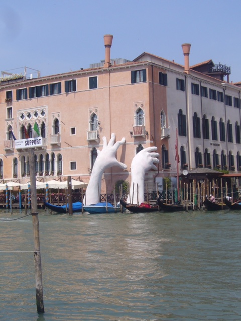 Lorenzo Quinn – CA Sagredo 4 Installation Haende von Lorenzo Quinn bei der Cà d’Oro am Canale Grande, Foto: Marco Zanco Drucken