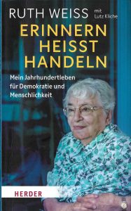 Ruth Weiss Leben heißt Handeln – Mein Jahrhundertleben für Demokratie und Menschlichkeit Verlag Herder, 1. Auflage 2025, Klappenbroschur, 176 Seiten, ISBN: 978-3-451-03621-7 Klappbroschur, 20 Euro. Kindle/PDF 15,99 Euro