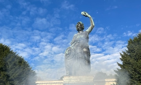 Die Bavaria ist eine beeindruckende Bronzefigur und das weithin bekannte Wahrzeichen Bayerns. Sie wurde seit dem Jahr 1840 von dem Bildhauer Ludwig von Schwanthaler im Auftrag von König Ludwig I. geschaffen. Nach dem Tod von Ludwig von Schwanthaler am 14. November 1848 wurde sie von Ferdinand von Miller fertiggestellt, der zuvor schon die Leitung der Gießhütte zum Erstellen des Bronzegusses übernommen hatte. Die Statue stellt eine weibliche Figur dar, die die Stärke, Freiheit und Tradition Bayerns symbolisiert. Mit einer Höhe von über 18 Metern und einem Gewicht von rund 78 Tonnen gehört die Bavaria zu den größten Bronzegüssen der Welt und ist die einzig begehbare Großbronze in Deutschland. Die Anhöhe, an der die Bavaria errichtet wurde, war bereits im 19. Jahrhundert ein zentraler Ort für die Münchnerinnen und Münchner, da hier seit dem Jahr 1810 das Oktoberfest stattfindet. Die Bavaria ist seit ihrer Errichtung ein bedeutendes Symbol für das Land Bayern und Ausdruck der bayerischen Identität sowie Kultur.