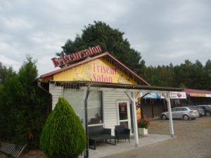 Nach Osinów Dolny mitgekommen ist an diesem Vormittag auch Frau Urbankes Ehemann. Zum Tanken, und um sich eine neue Winterjacke zu kaufen, wie er sagt. Derweil seine Frau beim Frisör sitzt lässt sich Herr Urbanke darußen eine Bratwurst schmecken, zwei Stück mit Brot und Senf für umgerechnet 1,80 Euro. Den Becher Bier gibt es für umgerechnet 80 Cent. Aber nur wenige machen davon Gebrauch. Denn an der Grenze wird neuerdings wieder engmaschiger kotrolliert. „Wegen illegaler Migration und Schiebereien in die Ukraine und nach Russland“, wie ein Beamter der Bundespolizei auf Nachfrage zu verstehen gibt. Alkoholtest inklusive, sobald ein Verdacht bestünde. Besonders gefragt seien in der Ukraine Gebrauchtwagen, deren Preise zuletzt stark gestiegen seien, heißt es. Viele Händler nutzten wohl die weltpolitische Lage, um den Osten mit französischen und deutschen Autos zu versorgen, glaubt indes Herr Urbanke, der früher als Maurer gearbeitet hat.
