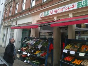 „Wir bieten vor allem arabische Lebensmittel an, doch gilt das nicht für unsere Kundschaft“, sagt Khaled Kaznadar mit einem freundlichen Lächeln, während er durch seinen Laden in der Leipziger Eisenbahnstraße 20 führt. Und die gerade neu angelieferte Ware inspiziert, Frischobst und Süßwaren aus Algerien, dem Libanon und Jordanien, pünktlich zum muslimischen Zuckerfest, das neuerdings auch vermehrt an deutschen Schulen gefeiert wird, oft ohne dessen religiöse Bedeutung zu verstehen. Wenige Tage zuvor lief im Leipziger Lokalradio gar der Spot eines Süßwarenherstellers, der mit Gratisgaben zum Zuckerfest für sich warb, was Khaled als Geschäftsmann nur recht sein kann. Am Ende des Ramadans, den das Zuckerfest traditionellerweise einläutet, klingelt bei vielen Händlern nochmal so richtig die Kasse.