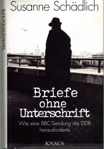 Susanne Schädlich. Briefe ohne Unterschrift. Wie eine BBC-Sendung die DDR herausforderte. 285 Seiten. Abbildung von Originalbriefen. Albrecht Knaus Verlag 2017.