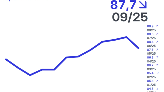 Die Stimmung unter den Unternehmen in Deutschland hat sich verschlechtert. Der ifo Geschäftsklimaindex sank im September auf 87,7 Punkte, nach 88,9 Punkten im August. Die Unternehmen waren weniger zufrieden mit den laufenden Geschäften. Zudem trübten sich die Erwartungen merklich ein. Die Hoffnung auf wirtschaftliche Erholung erleidet einen Dämpfer.