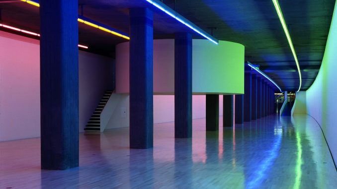 Dan Flavin: Im Jahr 1994 wurde der vom Architekten Uwe Kiessler gestaltete Kunstbau eröffnet. Mit der unterirdischen Galerie erschloss sich für das Lenbachhaus eine neue Dimension für Sonderausstellungen. Dan Flavin (1933–1996) entwickelte eigens für die Eröffnungsausstellung die Installation Untitled (for Ksenija), 1994. Das Spätwerk bekräftigt Flavins fortwährende künstlerische Beschäftigung im Spannungsfeld von Lichtkunst und Architektur auf eindrückliche Weise. Seine langjährigen Freunde und Wegbegleiter Heiner Friedrich und Philippa de Ménil schenkten dem Lenbachhaus dieses Werk zum Andenken an ihre Eltern Harald und Erika Friedrich sowie John und Dominique de Ménil. Anlässlich des 80. Geburtstags von Heiner Friedrich wird Untitled (for Ksenija) ein weiteres Mal im Kunstbau ausgestellt.