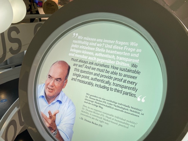 In einem zweiten Schritt beleuchtet die Ausstellung die Vorzüge der Elektromobilität, gibt Einblick in die Welt moderner, leistungsstarker Batterien und erläutert die unterschiedlichen Technologien des Elektroantriebs. Einen großen Beitrag auf dem Weg der Transformation hin zu emissionsfreiem Fahren leistet die Digitalisierung. Mit Hilfe intelligenter Features unterstützt sie das elektrische Fahren. Große Bedeutung kommt in der Ausstellung auch dem Design im Automobilbau zu. Welche Materialien können zukünftig in der industriellen Fertigung aus nachwachsenden Rohstoffen gewonnen werden? Welche ästhetischen Anforderungen müssen BMW Fahrzeuge von morgen erfüllen? Den Schlusspunkt des interaktiven Rundgangs bildet eine besondere Ruhezone, die ein Ambiente von Entschleunigung bietet.