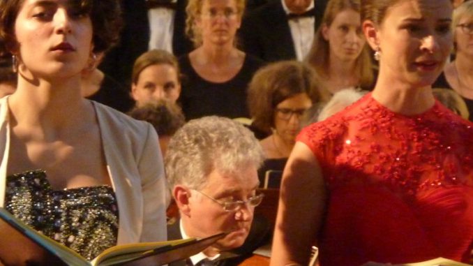 Von wegen knappe 3 Stunden. „Beethovens große Musikalische Akademie“ dauerte – von 19.30 Uhr bis 23.20 Uhr – am 2. EW-Festival-Wochenende so (und also viel zu) lange, dass sich die Reihen in der St. Michaelskirche nach der 2. Pause merklich lichteten. Sogar mit den Promis Reiner Kunze und Heinrich Oberreuter, der immerhin Festival-Kuratoriumspräsident ist. Die fehlten, als Dirigent Jonathan Cohen die die fulminante Nationale Kammerphilharmonie Prag mit Ludwig van Beethovens herrlich kurioser Erster zum krönenden Abschluss eines Mammut-Konzertabends führte – und das mit ungebrochener Energie und purem Spürsinn für eine ansteckend wirkende erlesene Mischung aus Seria-Dramatik und jugendlichem Überschwang, die von Anfang an den Abend bestimmten. Kunze, Obereuter & Co verpassten denn auch den zweiten bejubelten Auftritt des jungen Ausnahme-Pianisten Kristian Bezuidenhout mit Beethovens beiden ersten Rondos op. 51 und die damit kaum je erlebte Total-Annäherung der beiden Super-Wiener Klassiker Ludwig und Wolfgang Amadé.
