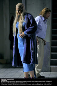 Die Buh-Rufe nach der ersten Ring-Sequenz müssen orkanartig gewesen sein, nach der zweiten fielen sie etwas gemäßigter aus. Auch mit Cornelius Meister, dem Stuttgarter Generalmusikdirektor der Staatsoper, der kurzfristig für den Finnen Pietari Inkinen. eingesprungen ist, war man zunächst nicht zufrieden. Zu sehr hatte er wohl zu Beginn mit der sehr spezifischen Bayreuther Akustik zu kämpfen. Außerdem gab es corona-bedingt zwei verschiedene Orchesterkonstellationen, die dem Dirigenten nach extrem kurzer Probezeit noch mehr abverlangen als üblich. Wer Cornelius Meister in Stuttgart in dieser Spielzeit beim neuen „Ring“ gehört hat, weiß um seine Qualitäten, Wagner-Musik analytisch oder rauschhaft überwältigend? Bei den diesjährigen Festspielen ist beides nicht durchgehend gelungen. Cornelius Meister hat sich im Lauf der beiden Sequenzen dennoch enorm gesteigert, das Orchester zuweilen zu großen Momenten inspiriert, Aber gerade bei orchestralen Höhepunkten wie „Rheinfahrt“ und „Trauermarsch“ war das nicht der Fall. Der Beifall für ihn, das Orchester und die Riege der Sänger war verdient. Gemessen an seiner Länge sind die Gesangsleitungen aber unterschiedlich bewertet worden. Frenetisch gefeiert wurden die beiden bayreuth-bewährten Tenöre Klaus-Florian Vogt als Siegmund und Andreas Schager als Siegfried im „Siegfried“ in seiner Paraderolle. Der eine mit seiner sowohl lyrischen als auch kraftvollen Stimme mit einem sehr eigenen Timbre, der andere wegen seines schier unverwüstlichen Volumens mit metallischer Färbung. Stephen Gould, der Iron-Man unter den Tenören, als Siegfried in der „Götterdämmerung“ erhielt weniger Applaus, man hat ihn schon besser in Bayreuth gehört. Mehr als rollendeckend und solide sang Michael Kupfer-Radecky. Er sprang mit seinem schönen Bass- Bariton beim ersten Ring sogar als Wotan für den während der Vorstellung verletzten Tomasz Konieczny ein. Als Sieglinde gab Lise Davidsen ein beeindruckendes Rollendebüt ab und begeisterte das Publikum mit ihrem flexiblen hochdramatischen Sopran. Zum ersten Mal in Bayreuth singt Daniela Köhler die Partie der Brünnhilde am Ende des „Siegfried“, Ihre Stimme leuchtet wie das Licht, das die Erweckte jubelnd begrüßt. Gibt es gegenwärtig einen besten Wotan-Sänger? Für diese Rolle sind in Bayreuth einige Sänger abgesprungen, In diesem Ring gibt es jetzt zwei Besetzungen mit Egil Silins im „Rheingold“ und Thomasz Konieczny in der „Walküre“ und „Siegfried“, eine gute bis sehr gute Wahl.