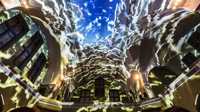 „Immersiv“ beschreibt einen Effekt, bei dem der Betrachter in eine multimediale Illusion aus Bild und Ton eintaucht. Durch ein 3D-Mapping-Projektionssystem können Inhalte wie Grafiken, Animationen, Bilder oder Videos auf dreidimensionale Objekte projiziert werden, so dass eine einzigartige Atmosphäre entsteht. Die 30-minütige Installation umhüllt den Betrachter mit animierten Bildern und den wohlig-sphärischen Klängen der Musik von Gustav Mahler und Joseph Haydn. Die Besucherinnen und Besucher erleben die Besonderheit der Architekturformen im Kirchenraum.