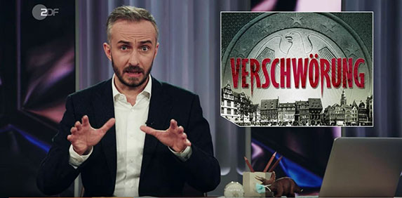 Das große Highlight war aber dann die Rückkehr von Jan Böhmermann. Das muss man (MUSS!! MAN!!) unbedingt nachholen: Überragendes Fernsehen. Eine großartige, sehr lustige, überaus gescheite halbe Stunde. Böhmermann machte da weiter, wo er bei Neo aufgehört hatte, subversiv und aufklärerisch, und setzte das Lieblingsthema der Kindergärtner in den öffentlich-rechtlichen Medien, die Verschwörungstheorien (die man jetzt besser „Verschwörungsmythen“ oder „Verschwörungserzählungen“ nennen soll) ins richtige Verhältnis: