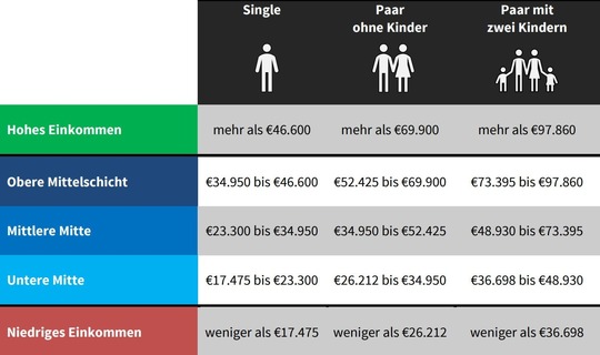 Die Hanns-Seidel-Stiftung lässt vom ifo Institut die finanzielle Lage der Mittelschicht in Deutschland untersuchen. Erste Ergebnisse konnten Ende Oktober in München vorgestellt werden. Demnach ist die Mittelschicht in Deutschland zunehmend kleiner als gedacht. Während sich 80% der Befragten selbst zur Mittelschicht zählen, gehören nach OECD-Richtlinien tatsächlich weniger als zwei Drittel (63%) zu diesem Kreis.