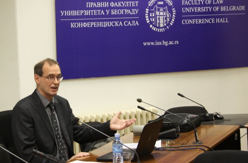 Professor Tretter bei einem Vortrag in Belgrad (Pressefoto: Ludwig-Boltzmann-Institut für Menschenrechte)