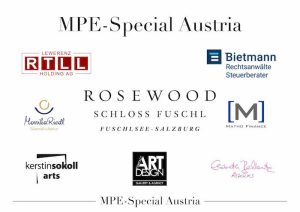 Die Kooperationspartner des MPE-Special Austria sind das Rosewood Schloss Fuschl, Bietmann Rechtsanwälte Steuerberater Part mbB, RTLL Lewerenz Holding AG, Matho Finance – Finanzierungsberatung, contact art design – Gallery & Agency und Nicole Doth, das Atelier und die Künstlerin Elsbeth Bellartz, die Glaskünstlerin und Glasdesignerin Monika Riedl mit Glasmanufaktur und die Unternehmerin und Künstlerin Kerstin Sokoll.