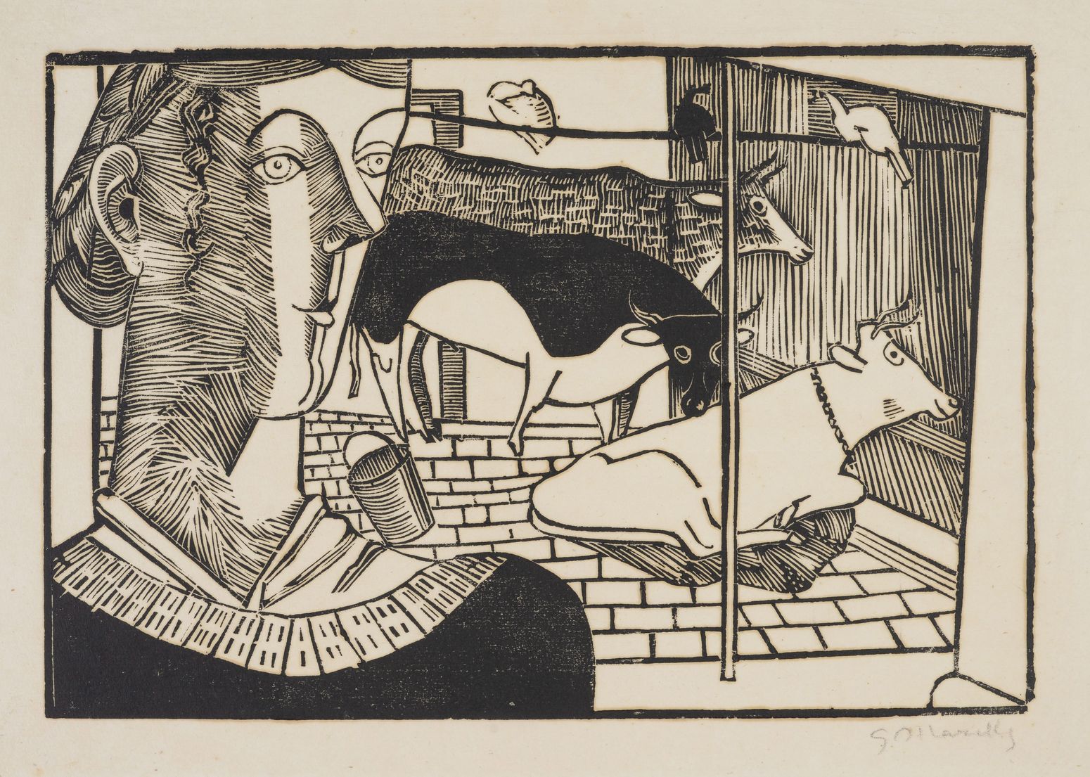 Gerhard Marcks, Der Stall, 1923, Holzschnitt, 220 x 315 mm, Klassik Stiftung Weimar, Schenkung Hildegard und Herbert Wippel; © VG Bild-Kunst.
