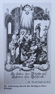 Eines von vielen kleinen Andachtsbildern des Buches „Gnadenreiches Jesulein“, eines Katalogs des Österreichischen Museums für Volkskunde im Wiener Gartenpalais, zeigt ein beliebtes Motiv der Jesuskind-Verehrung: Caspar, Melchior und Balthasar bei der Krippe von Bethlehem. „Sie thäten ihre Schätze auf, / Opferten ihm Geschenke“ steht unter der um 1800 entstandenen Darstellung von M. Bendl aus Augsburg. Das Einlegebildchen entstammt der Sammlung des Wiener Gelehrten und Wallfahrtsforschers Gustav Gugitz, der 1964 mit 90 Jahren starb. Seine enorme Sammlung von sage und schreibe 7000 Exemplaren ging in den Volkskundemuseums-Schatz über. 1998 kam er groß zur Geltung, als die Direktion ihre allfällige Jahresweihnachts-Ausstellung präsentierte. Das Begleitbuch ist für alle Sammler religiöser Druckgrafik von hohem Interesse und Wert. 213 Objekte werden wissenschaftlich ambitioniert vor- und in den jeweiligen thematischen Kontext gestellt, einige davon sogar in farbiger Wiedergabe. Besonders abgehandelt wird unter anderem das Thema „Jesulein als Neujahrsbote“. Den Neujahrswünschen wurde oft „der Gedanke an die irdische Vergänglichkeit beigefügt“, schreibt die Kuratorin Nora Czapka. Ihr gelang ein Buch, das weit über die ja bereits vor 25 Jahren gezeigte Ausstellung seinen Leser- und Nutzerkreis erfreut.