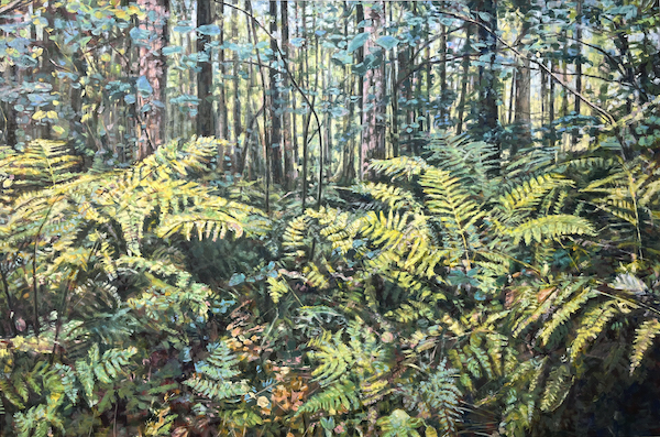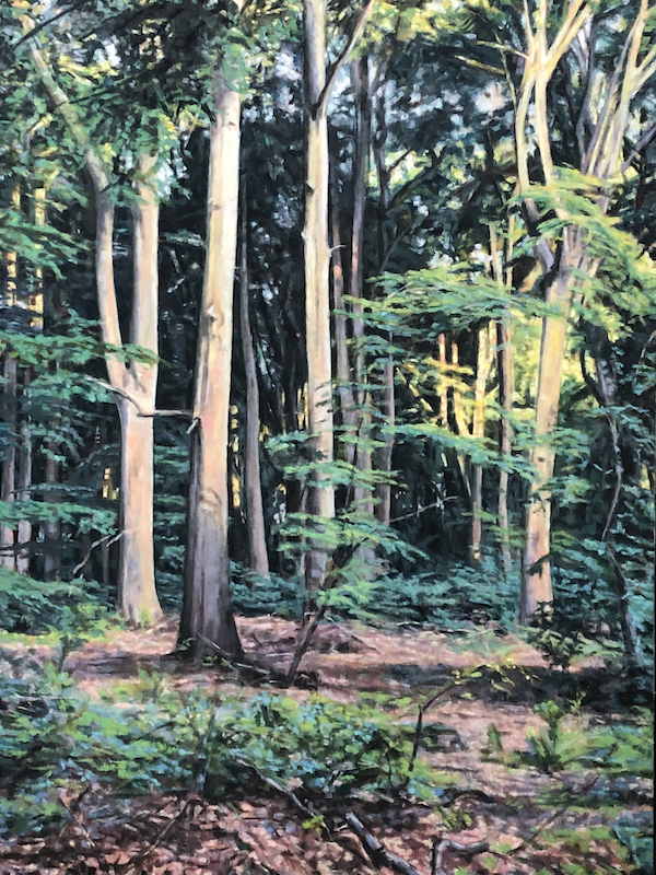 Hjördis Baacke malt Wälder. Realistisch, mit einem besonderen Augenmerk auf das Licht, was ihre Leinwände zuweilen impressiv wirken läßt. Jeder Wald hat seinen eigenen Charakter, ist eine Persönlichkeit und Baackes Waldbilder sind gleichsam Porträts.