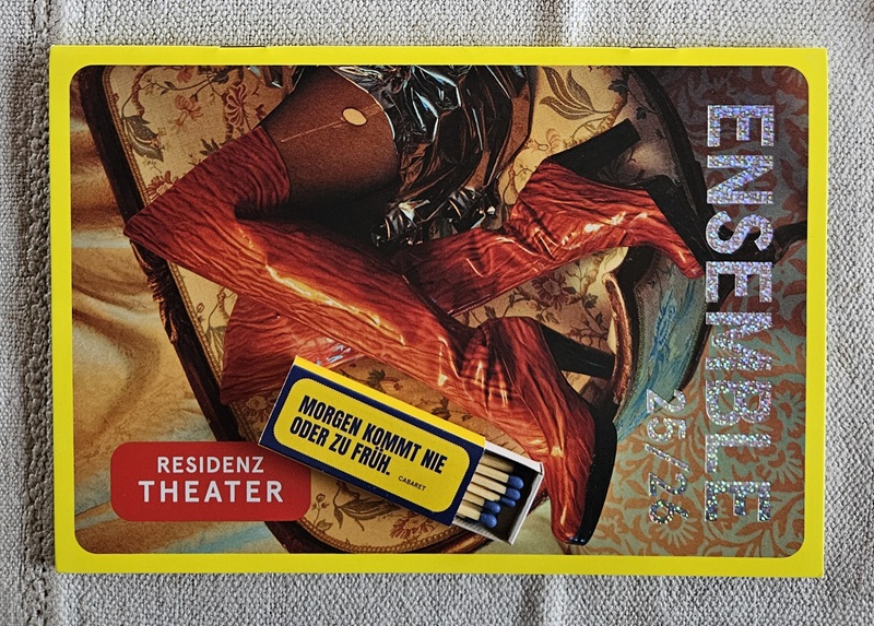 Gratis zum Programmheft gibt`s das bunt durchfotografierte Ensemble-Heft und eine 12er-Packung Zünder – mit Aufdruck aus einem „Cabaret“-Song: „Morgen kommt nie – oder zu früh“.