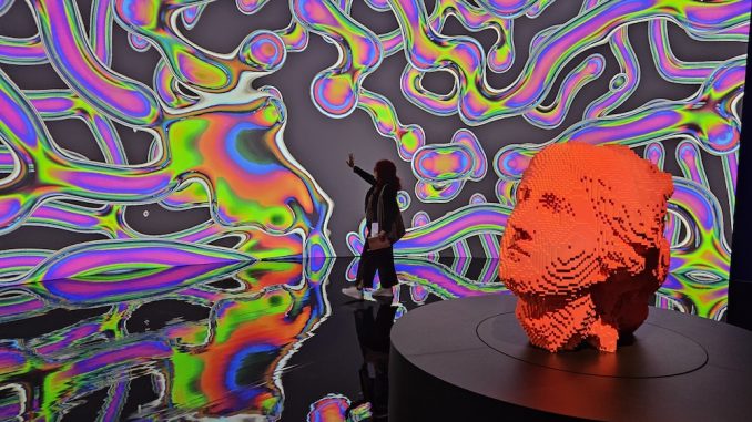 Miguel Chevalier bezieht die Inspiration zu seinen fantastischen Gebilden aus der Vielfalt und Schönheit der den Menschen umgebenden freien Natur. Sie darf sich, künstlich und künstlerisch, Saal für Saal, in der Kunsthalle entfalten. An den in tiefschwarzes Dunkel getauchten Wänden rankt sie sich farbig in die Breite und in die Höhe. Die Besucherschaft dieser Ausstellung ausdrücklich aufgefordert, an ihrer Entfaltung aktiv mitzuwirken. Die erste interaktive, schon am Anfang der ganzen Schau gebotene und fesselnde Installation von 2012 heißt passend „The Origin of the World“. Damit verknüpft Chevalier zum einen die Vergangenheit und die Zukunft, zum anderen die analoge und die digitale Welt: winzige Zellstrukturen des Ökosystems und Pixel, die kleinsten Elemente des digitalen Bildes.