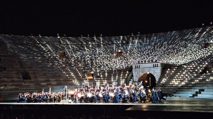 Es ist an der Zeit, sich zwischendurch vor dem großartig aufspielenden Orchestra di Fondazione Arena di Verona zu verbeugen und ihm großen Respekt zu zollen dafür, dass der Klangteppich mit ausgesuchten „Intermezzi“ fein gewebt blieb. Unter der äußerst souveränen Stabführung von Jochen Rieder. Aber auch dank eines lupenreinen und zugreifenden Blechs, dauerhaften Streicher-Wohlklangs und durchgehaltener Präsenz des Orchesters. Ein Pult-Debüt des vielseitig musikalischen Stuttgarters Jochen Rieder, das ihn in die erste Reihe der Arena-Dirigenten rückte.