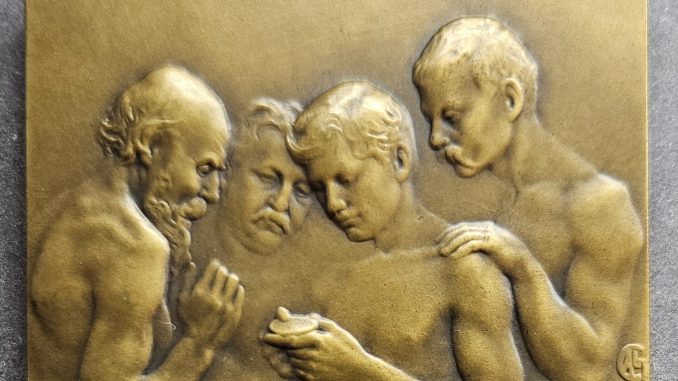Es gibt keine Medaillensammlerinnen. So jedenfalls denkt man, wenn auf die von der Bayerischen Numismatischen Gesellschaft gestellte Frage, welche Medaille die schönste ist, nur vier – allerdings höchst kompetente und prominente – Herren antworten. Die Vereins-Mitglieder, alle mit Dr.-Titel, sind Rainer Albert, Martin Hirsch, Hans Christoph von Mosch und Andreas Pangerl. Für ihr Ausstellungs-Konzept „mit Sammleraugen“ in der Staatlichen Münzsammlung der Münchner Residenz stand die Schau im Fritz Koenig Museum Landshut vor gut drei Jahren Pate. Die vier Experten änderten das Konzept Alexandra von Arnims ein wenig ab. „Im Mittelpunkt“, sagen sie, „steht nicht ein Künstler“ – also von „Künstlerinnen“ ist nicht die Rede – „sondern allein das weit gefasste Thema Medaille, zu dem Sammler ihre Lieblings-Medaillen als Leihgaben und dazu persönliche Begründungen und Kommentare“ einlieferten.