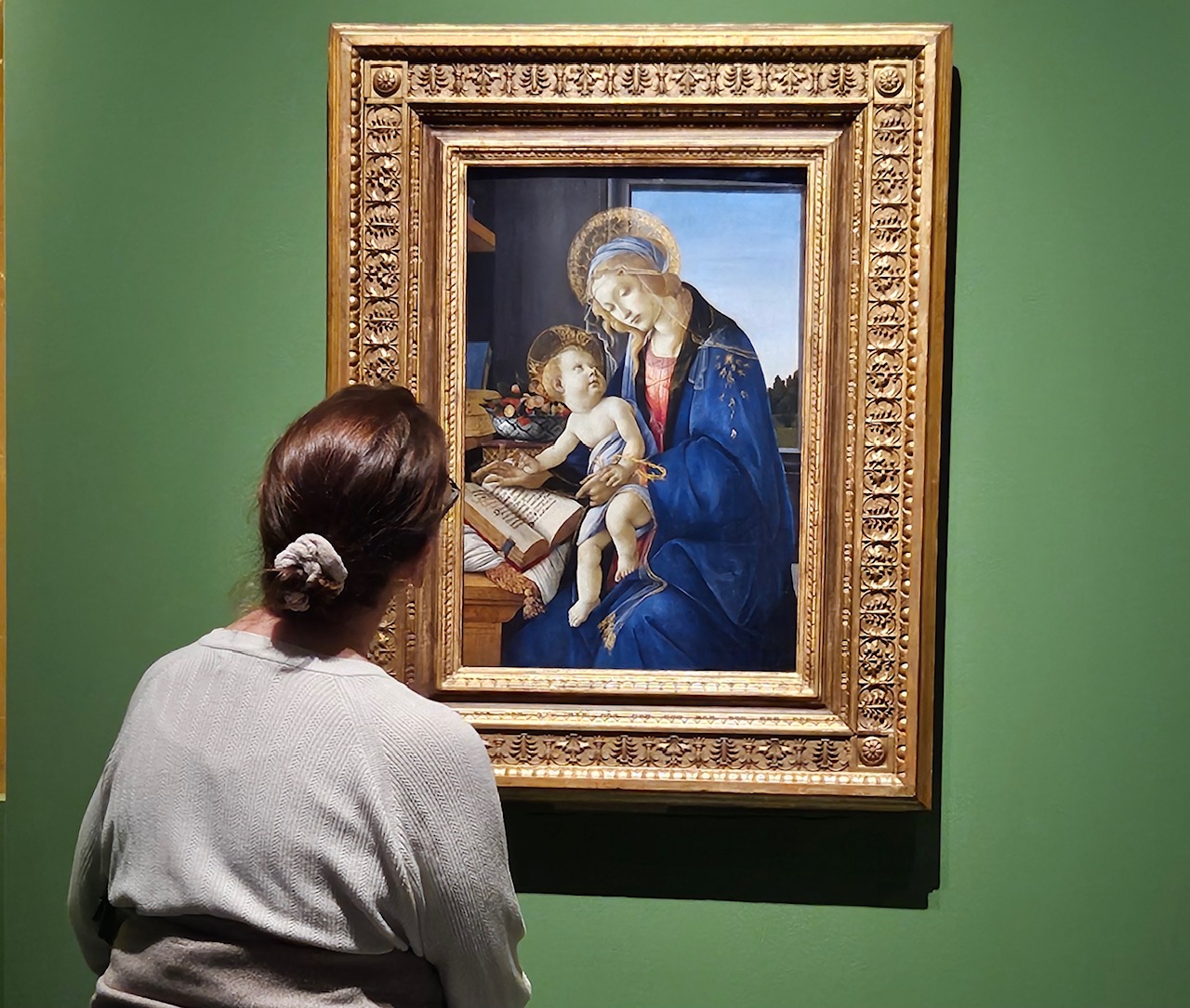 Eine Besucherin vor Sandro Botticellis „Madonna mit dem Buch“, Florenz, 1480, Tempera auf Holz, Foto: Hans Gärtner