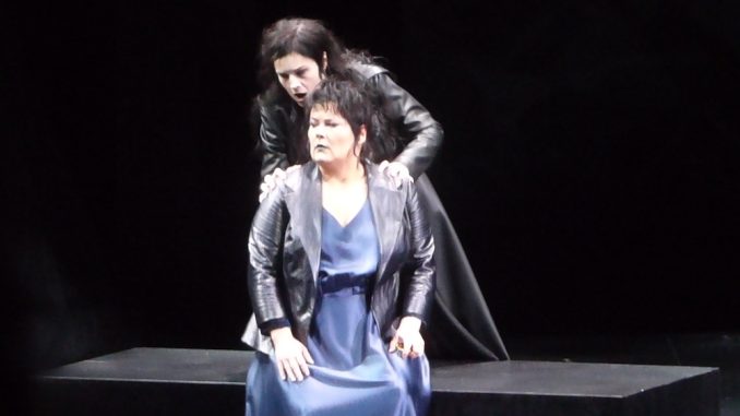 Passionsspielhaus Erl, Sonntag 23. Juli, so gegen 16.30 Uhr, zweite Aufführung von insgesamt drei in diesem noch anhaltenden Tiroler Festspiel-Sommer: 1. Aufzug „Götterdämmerung“ von Richard Wagner, grandios neu inszeniert und damit den „Ring des Nibelungen“ bombig komplettiert von Brigitte Fassbaender. Wotans straffällig gewordene Lieblingstochter Brünnhilde, verkörpert von der wunderbaren Christiane Libor, sitzt grübelnd auf einem Klotz. Da kriegt sie geschwisterlichen Blitz-Besuch aus Walhall. Eine junge, schlanke, große, zarte Frau. Das Gegenstück einer Klischee-Walküre. Mit „ängstlicher Scheu“ in der Stimme von stupender Dichte, dunkler Strahlkraft und glasklarer Diktion redet sie auf die leidgeprüfte Schwester ein, doch bitte den Rheintöchtern den Ring, den ihr Siegfried (Anti-Held mit Kugelbäuchlein: Vincent Wolfsteiner) eroberte, zurückzugeben: „An deiner Hand der Ring – er ist`s: hör meinen Rat! Für Wotan wirf ihn von dir!“