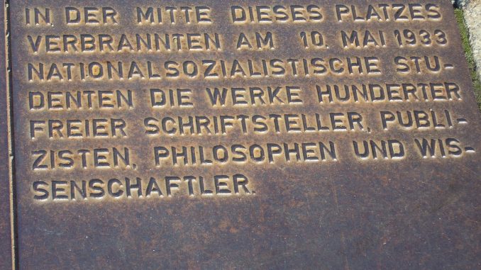 Sie sind der Höhepunkt der vierwöchigen Aktion »Wider den undeutschen Geist«, deren Ziel die Vernichtung des deutsch-jüdischen Geisteslebens. Schon Wochen zuvor werden an Universitäten hetzerische Plakate aufgehängt, die jüdische Mitbürger als »Widersacher« des deutschen Volkes bezeichnen, zur Reinerhaltung der deutschen Sprache auffordern und deutsche Hochschulen als »Hort des deutschen Volkstums« preisen. »Schwarze Listen« werden erstellt und die zu verbrennenden Bücher in Bibliotheken und Buchhandlungen ausgesondert. Autorinnen und Autoren ebenso Professoren von Hochschulen, an deren Gesinnung gezweifelt werden denunziert, beispielsweise durch das Aufstellen von öffentlichen Schandpfählen mit ihren Namen und Werken gebrandmarkt. Hetze und Hatz greift um sich. Nirgendwo regt sich hörbarer Protest. Das Verbrennen und das Verbannen vollzieht sich reibungslos und mit offener oder stiller Zustimmung. Auch noch Monate nach dem 10. Mai 1933 werden unter anderem durch die Hitlerjugend und Schulbehörden weitere Bücher verbrannt. Insgesamt sind 102 Bücherverbrennungen in über 90 deutschen Städten dokumentiert. Eine schauderhafte Bilanz.