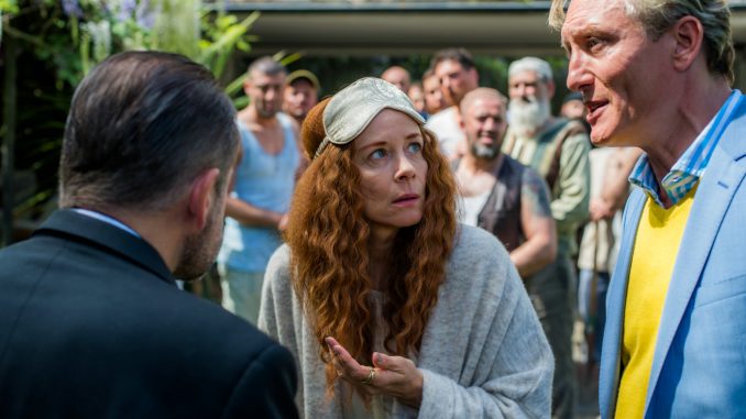 Gut situiert und etwas gelangweilt leben die Gartenarchitektin Evi Müller-Todt (Katja Riemann) und ihr Mann Claus (Oliver Masucci), ein Schönheitschirurg, in ihrer gepflegten Villa. Auf der Suche nach einer neuen Haushaltshilfe, schaltet Claus in bester Rotweinlaune eine Anzeige: „Sklave/in gesucht“. Nicht wenig erstaunt über die Ansammlung kuriosester Gestalten in Lack und Leder vor ihrer Haustür, muss Claus feststellen, dass seine Anzeige allzu wörtlich genommen worden ist. Auf Wunsch der schockierten Evi schickt er alle wieder nach Hause. Doch dann stehen plötzlich Bartos (Samuel Finzi) und seine Frau Lana (Lize Feryn) vor der Tür. Gepflegt, gebildet und dienstfertig, sind die beiden bereit, sich freiwillig in ein Herr-Knecht-Verhältnis zu begeben. Die beiden Paare vereinbaren eine Probephase. Nach anfänglichen Schwierigkeiten finden die Müller-Todts zunehmend Gefallen am Verwöhnprogramm ihres neuen Hauspersonals und wähnen sich im Paradies. Doch das Blatt wendet sich! Als sich im Garten immer mehr billige Arbeitskräfte für den von Bartos angeregten Poolbau tummeln, gerät die Situation zunehmend außer Kontrolle….