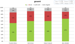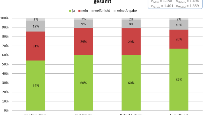 „Wollen Sie mit Ihrer Wahlabsicht eine Kanzlerschaft von Friedrich Merz/ Olaf Scholz / Robert Habeck / Alice Weidel verhindern?“