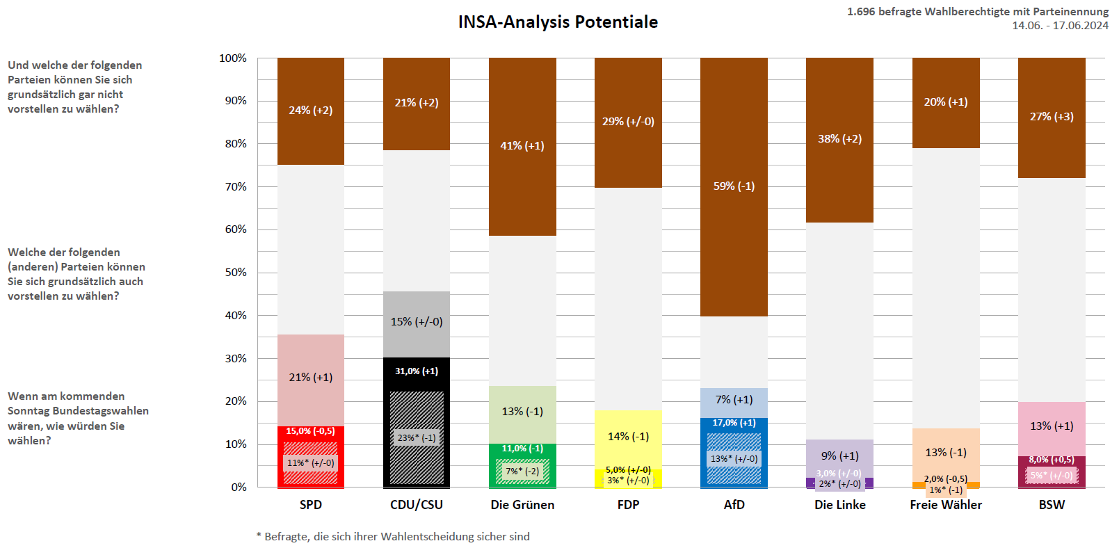INSA-Sonntagsumfrage: Union so stark wie die Ampel. Schwarz-Rot oder Jamaika