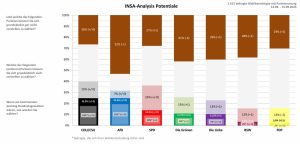 Bei den potentiell erreichbaren Wählern können die Grünen, die Linke sowie das BSW jeweils einen Prozentpunkt hinzugewinnen. Die FDP verliert hier zwei Prozentpunkte. Die Potentiale der Union, der AfD sowie der SPD bleiben konstant.
