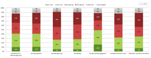 Die relative Mehrheit (42 %) der (eher) pessimistisch eingestellten Befragten glaubt (eher), dass sich die wirtschaftliche Situation Deutschlands durch eine andere Regierung wieder verbessern ließe. 36 Prozent dieser Gruppe glauben dies hingegen (eher) nicht. Mit 22 Prozent geben aber auch viele Umfrageteilnehmer an, dass sie hierzu keine Einschätzung vornehmen können und 0,4 Prozent wollen bei dieser Frage keine Angabe tätigen.