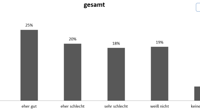Die Befragten sind in der Bewertung des Positionspapiers gespalten: 39 Prozent (kumuliert) finden dieses eher (25 %) oder sehr gut (14 %) und 38 Prozent (kumuliert) eher (20 %) oder sehr schlecht (18 %). Etwa ein Fünftel (19 %) weiß hier keine Antwort und fünf Prozent machen keine Angabe dazu.