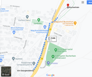 Isarstr. 3 (Eingang über Am Georgenstein, parallel zur B11) – Glashaus mit Säulen