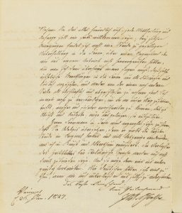 „Der Begriff ‚Weltliteratur‘ diente für Goethe, ähnlich wie ‚Weltverkehr‘ oder ‚Welthandel‘, zur Beschreibung eines dynamischen Prozesses, der sich erst in der Zukunft vollziehen wird und unabschließbar ist. Weltliteratur bezeichnet dabei das Projekt einer (tendenziell weltweit gedachten) internationalen literarischen Kommunikation, des fortschreitenden geistigen Austauschs der Nationen untereinander und der wechselseitigen künstlerischen Beeinflussung ihrer Literaturen“, erläutert Dr. Yvonne Pietsch, die den Brief als zuständige Mitarbeiterin für das Goethe- und Schiller-Archiv auswertet. „Dass er nun bei der diesjährigen Stargardter Auktion zum Verkauf stand und vom Archiv erworben werden konnte, ist ein großes Glück“, freut sich Dr. Silke Henke, die den Brief für das Archiv ersteigert hat.