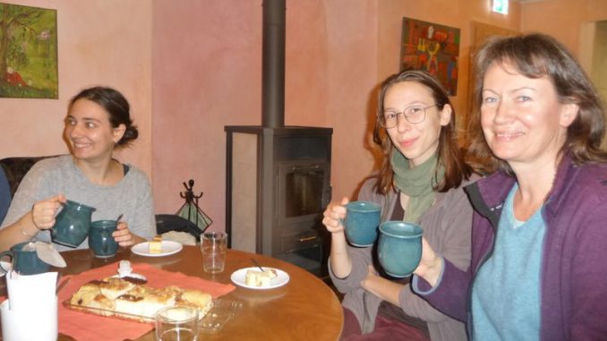 An diesem Nachmitttag ist auch die älteste Tochter da. Die 21-Jährige hat sich in Leipzig für Kunstpädagogik eingeschrieben und möchte später den Hof ihrer Eltern fortführen, sagt sie, gerade mit Freunden auf einem Waldspaziergang gewesen, auf dem sie Pilze und besonders schön geformte Steine gesammelt haben. Draußen ist es dunkel und kalt geworden. An den Wänden hängen selbst gemalte Bilder, der Raum ist holzgetäfelt, und der Kamin sorgt für behagliche Wärme. Heike Wolff schenkt Tee ein und serviert selbst gebackenen Kuchen. „Den mögen unsere Gäste besonders gern“, sagt sie und zeigt auf den mit der dicken Kruste und der gelben Vanillepaste. Sicher ist: Ohne das Engagement ihrer Familie wäre Molmerswende heute nur ein weiteres, verlassenes Dorf im schönen Mansfelder Land, idyllisch und der Natur überlassen, aber eben auch ohne das besondere Flair von Kunst und Kultur und allem, was Menschen ausstrahlen, die sich dafür begeistern.