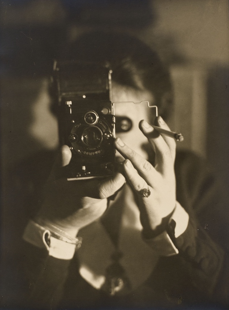 Germaine Krull Selbstporträt mit Icarette, 1925 Silbergelatineabzug, 23,5 × 17,3 cm Stiftung Ann und Jürgen Wilde, Bayerische Staatsgemäldesammlungen – Sammlung Moderne Kunst in der Pinakothek der Moderne München Inv. Nr. AJW 574 Repro: Bayerische Staatsgemäldesammlungen, Sibylle Forster © Nachlass Germaine Krull, Museum Folkwang, Essen