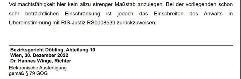 Bezirksgericht Döbling, Richter Winge, Beschluss vom 30. 12. 2022 Bezirksgericht Döbling, Richter Winge, Beschluss vom 30. 12. 2022 Drucken