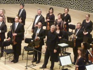Bei der einstimmenden Wiedergabe der knapp halbstündigen „91er“ in Es-Dur, einer der am wenigsten populären der gut 100 Symphonien Joseph Haydns, atmete man mehr den Mozart-nahen Geist der Abgeklärtheit als das erwartete Aufleuchten so manche kleiner Widerborstigkeiten des Eisenstädter fürstlichen Kapellmeisters. Das Fagott machte eine gute Figur, wie überhaupt das Holz insgesamt sich bestens in Form fand und Zacharias in die Hand spielte, dass es eine wahre Freude, auch bei Mozart, war. Arnold Schönbergs zweite Kammersymphonie op. 38, erstmals 1940 in New York öffentlich gemacht, putzte der weise Zacharias als ein Juwel der Sonderklasse auf. Er ließ ihm seinen eigenen herben Schimmer, den die Zweite Wiener Schule nicht durchgehend der Wiener Klassik entgegenzusetzen vermochte. Dem perfekt/perfide ausgefallenen „Con fuoco“-Satz noch lange nach zu lauschen fiel insofern leicht, als er so plastisch wie kaum je bei Schönberg das „musikalische Gedächtnis“ in Bewegung hielt und dem von „Elphi“ (Etage 15, Bereich J, Reihe 4) erwartungsgemäß akustisch verwöhnten Erstbesucher einen beinahe Wagner-seligen Schönberg von großer Nachhaltigkeit beschert hatte. (Beide Fotos vom Berichterstatter)