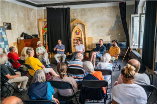 | Anlässlich des 25-jährigen Jubiläums des Yiddish Summer Weimar wird die Saison mit einer großen Geburtstagsparty mitten in der Stadt beendet. Dabei bietet das Co-Labor am Stadtschloss eine schöne Atmosphäre für lockeres, unkompliziertes Beisammensein. In kurzen, kostenlosen Workshops beschäftigen sich Künstler*innen und Lehrende mit jiddischer Poesie, jiddischer Sprache u.v.m. So können Interessierte in den Kontakt mit der jiddischen Kultur kommen. Das Mitmachangebot findet am 17. August ab 10 Uhr am Co-Labor statt und ist eine Veranstaltung des Yiddish Summer Weimar. |