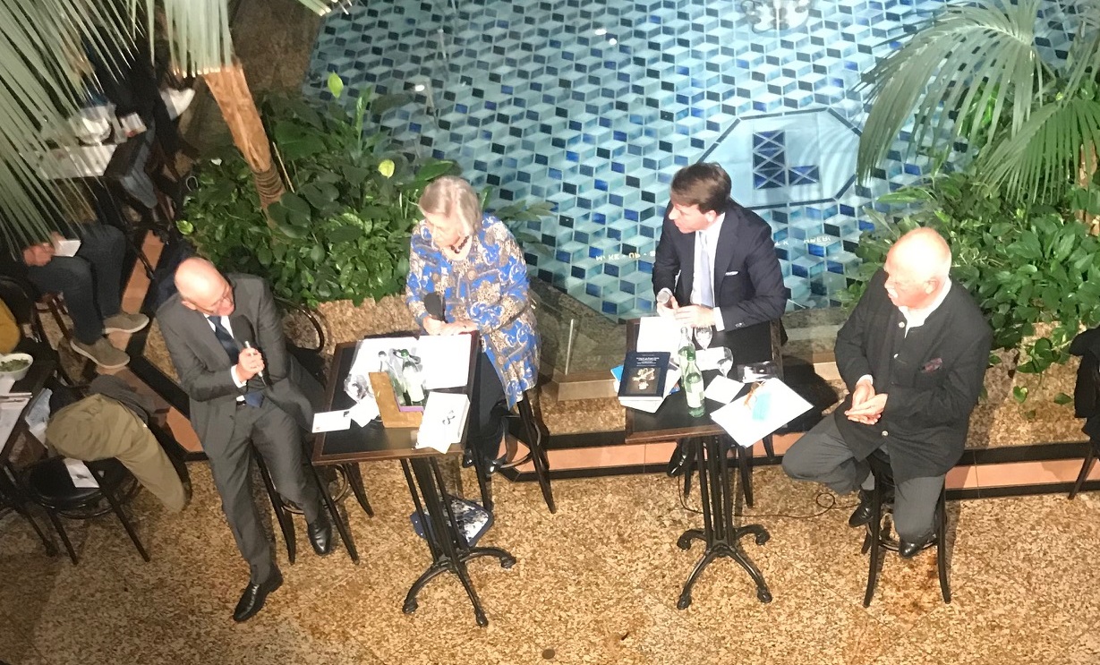 Situatives Bild im Salon Café Luitpold mit von links Dr. Christof Botzenhart, Dr. Martha Schad, Dr. Christian Gohlke, Dr. Peter Gauweiler