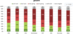 „Wie schätzen Sie alles in allem die Vertrauenswürdigkeit der im Bundestag vertretenen Parteien ein?“