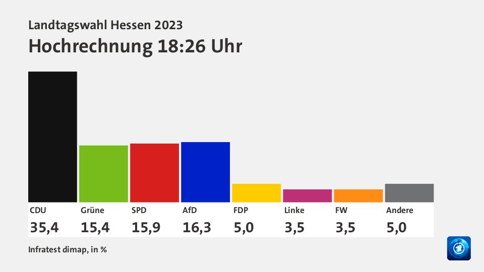 Sitzverteilung im hessischen Landtag, Quelle: ARD Sitzverteilung im hessischen Landtag, Quelle: ARD Drucken