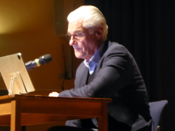 Sky de Mont Schauspieler Sky du Mont als Gerichtsverhandlungs-Reporter in Richard Wagners „Ring“: konzentriert, analysierend, mit leiser Ironie, Foto: Hans Gärtner Drucken